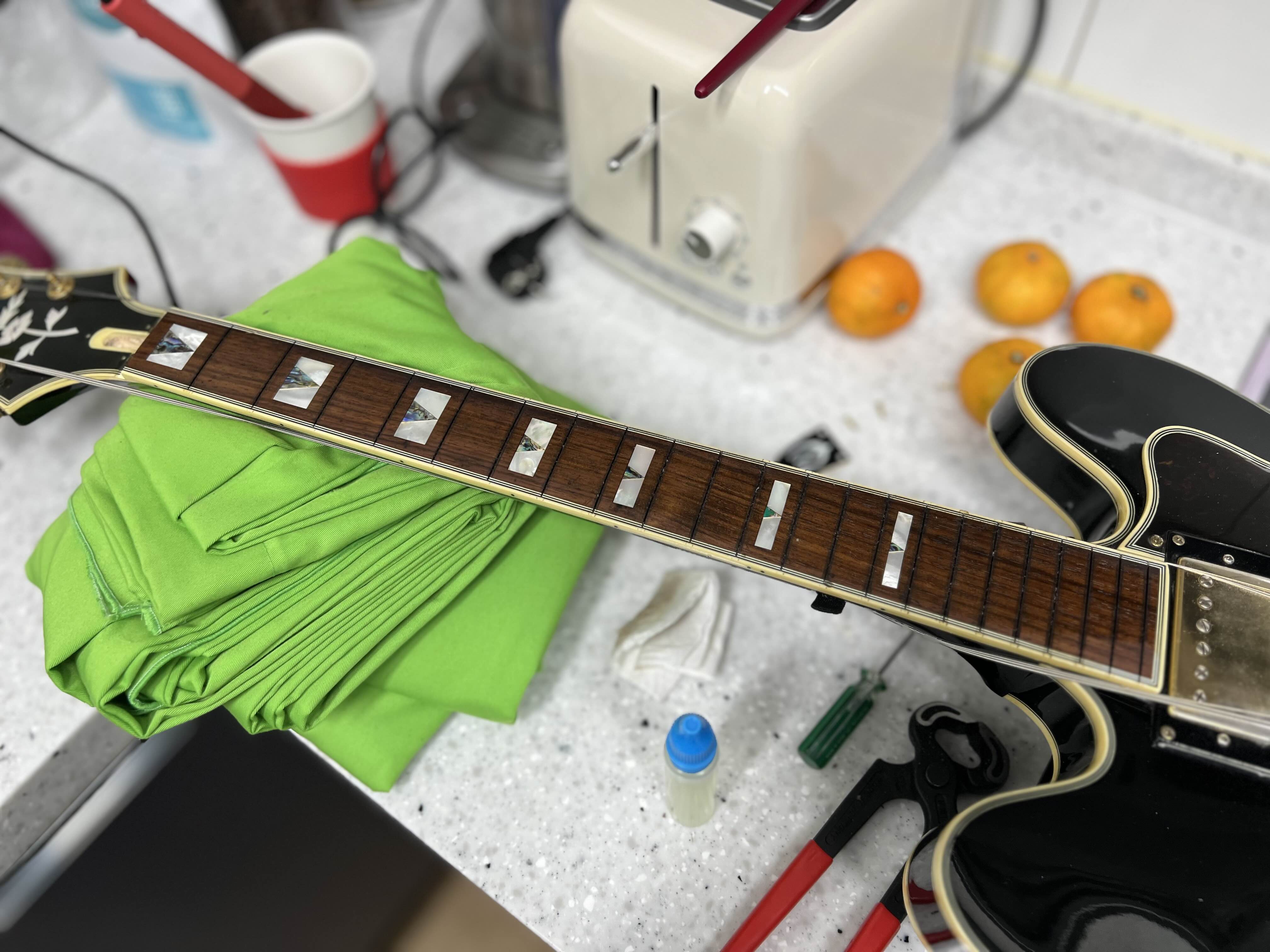 12인치 레디우스 블럭으로 지판 레벨링을 하고 정돈을 했다. 레벨링 하는 사진을 안 찍었네.